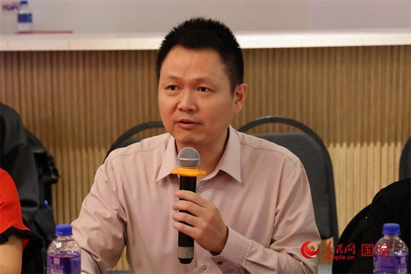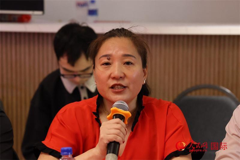 巴西华人文化交流协会执行主席季春苗在座谈会上致辞。人民网记者 陈海琪摄
